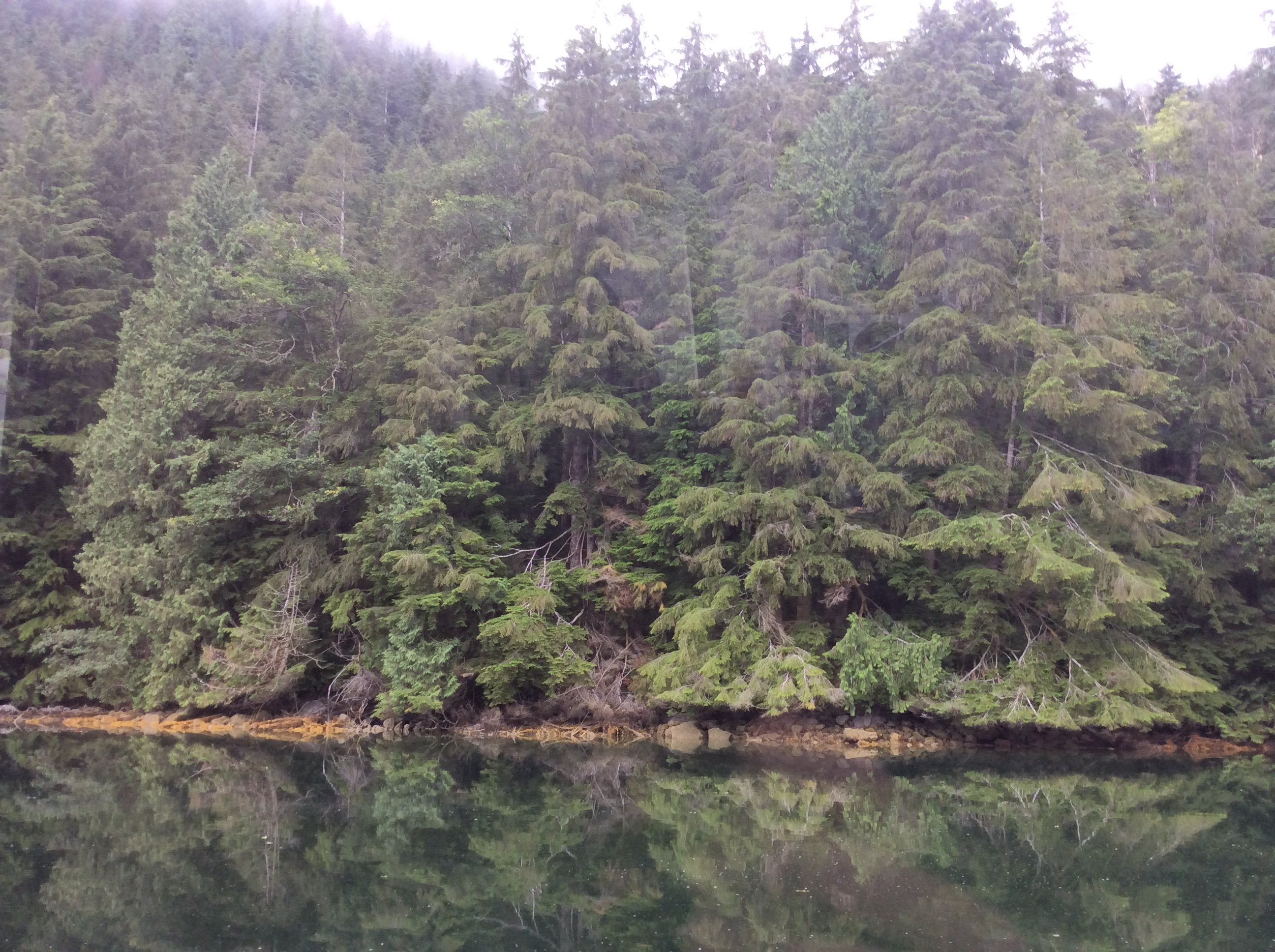 Small mountains too rugged to be called hills formed a partial bowl around us at Kwatsi. Each was shaped differently but all were covered by evergreen, cedars and hemlock mostly. Some, sadly, were dying because of a deadly lichen that seems to be spreading in this area. Maybe it was brought in by humans; maybe it’s just nature’s way of culling. Here, nature wins.